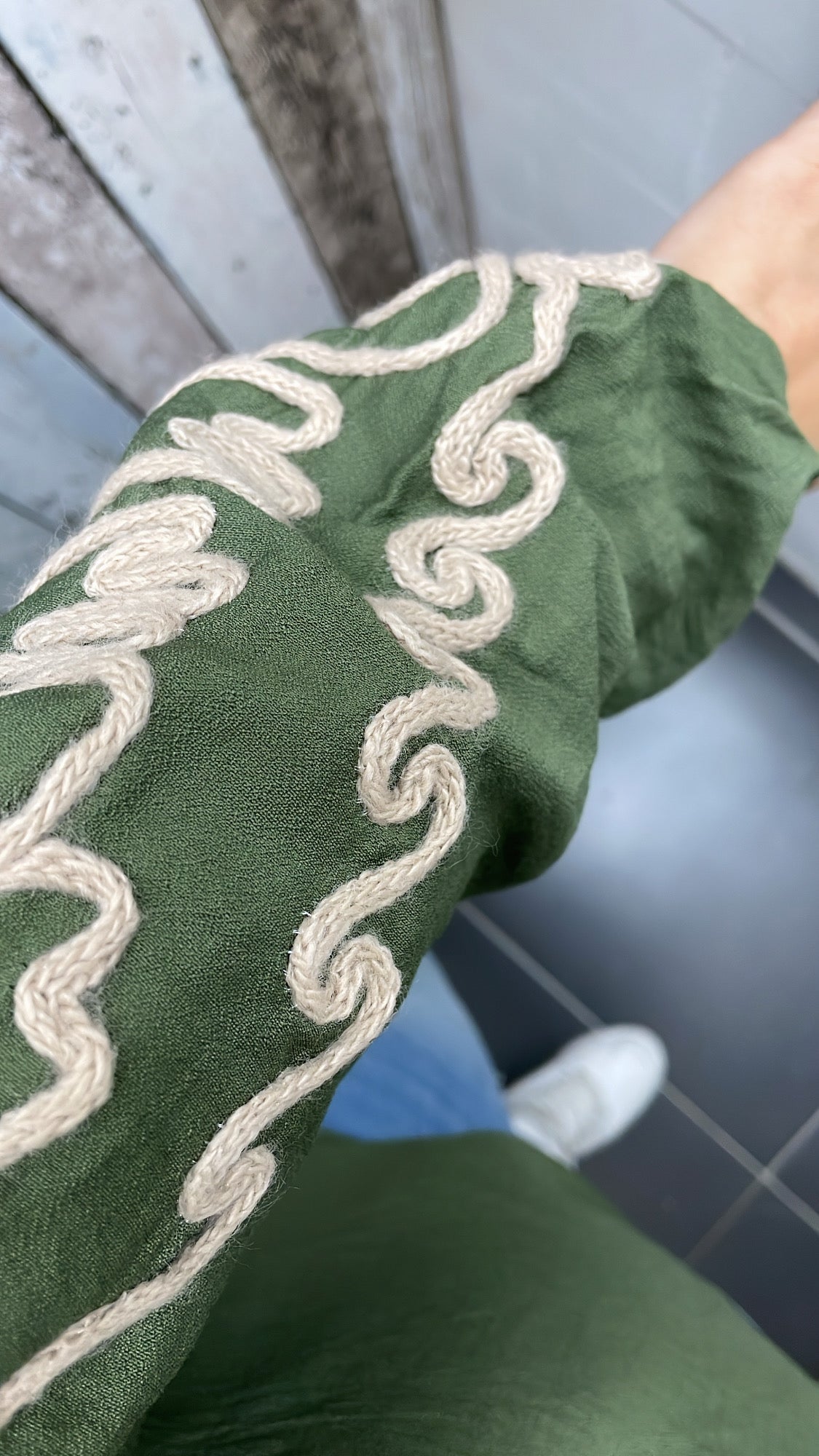 Dit jaar een nog mooiere borduursel die tot aan de schouder doorloopt.
