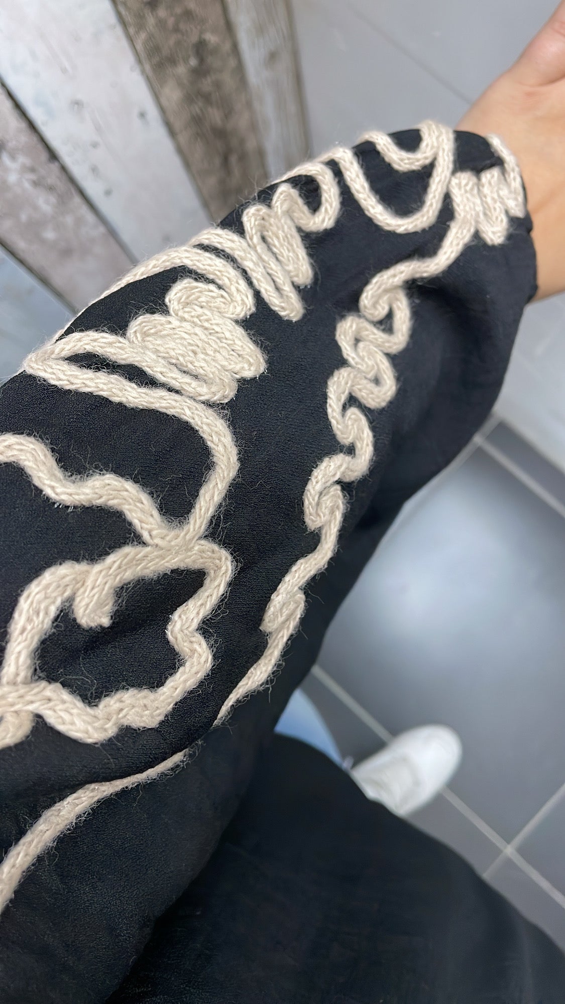 Dit jaar een nog mooiere borduursel die tot aan de schouder doorloopt.