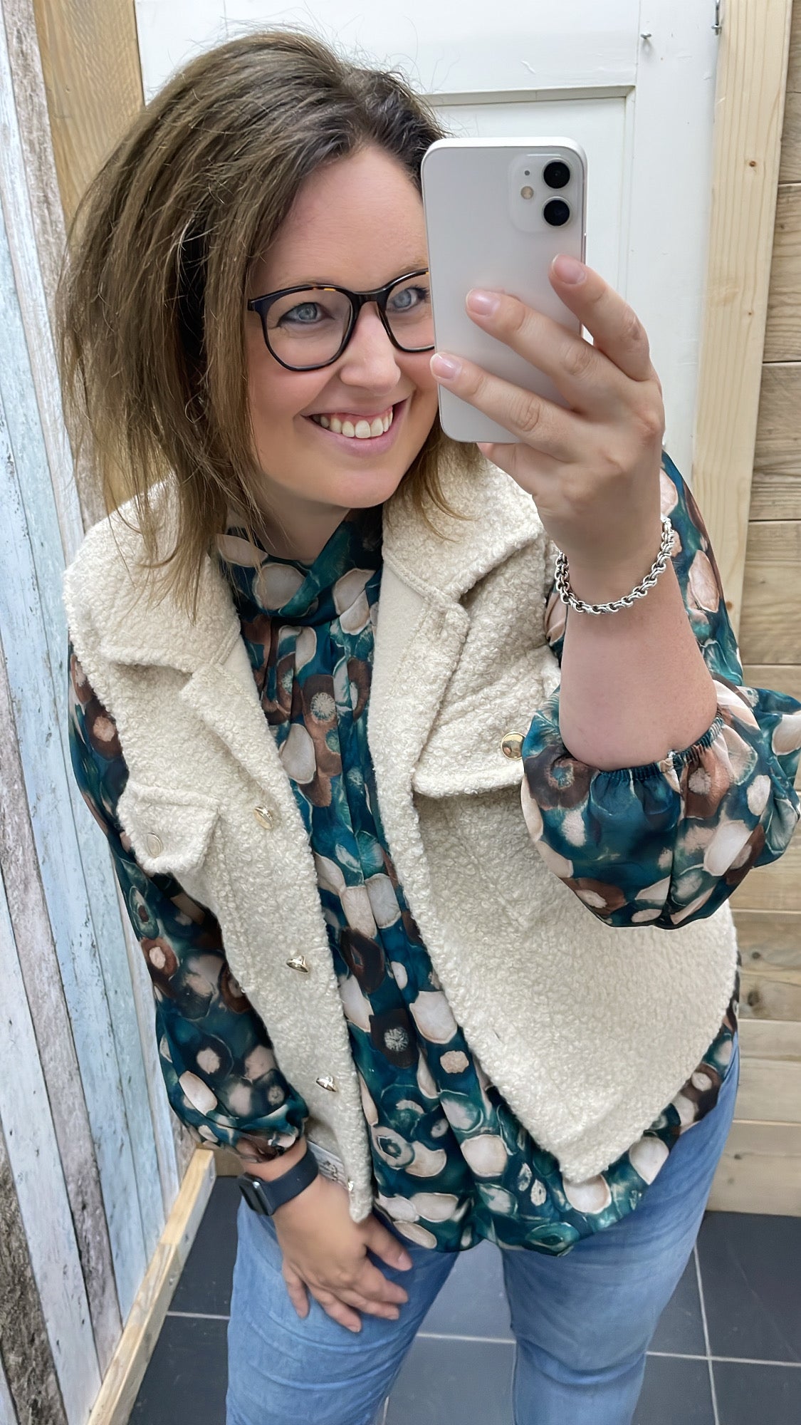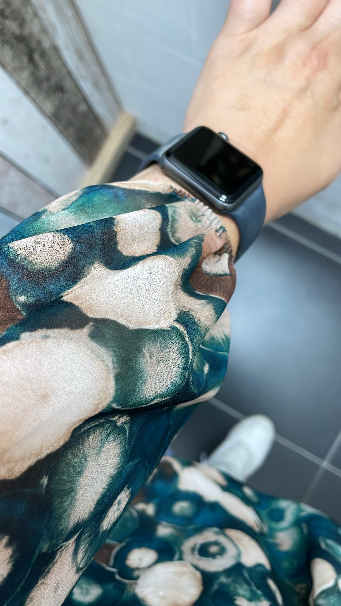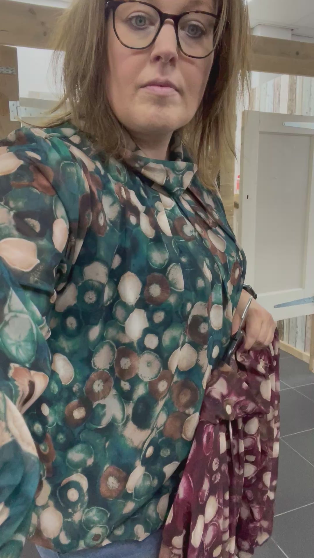 De stof is heerlijk luchtig. Aan de blouse zit nog een stof vastgemaakt.