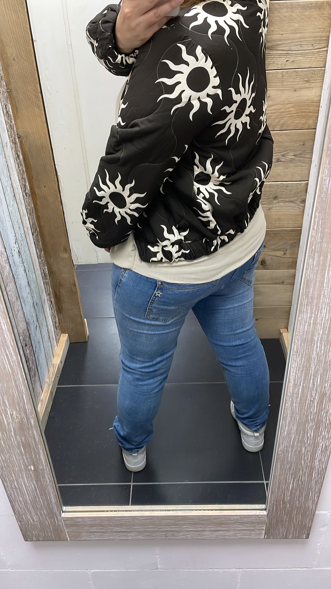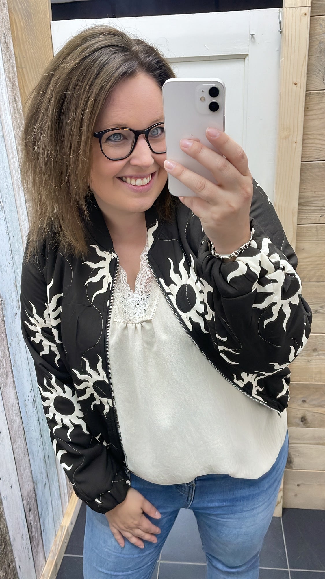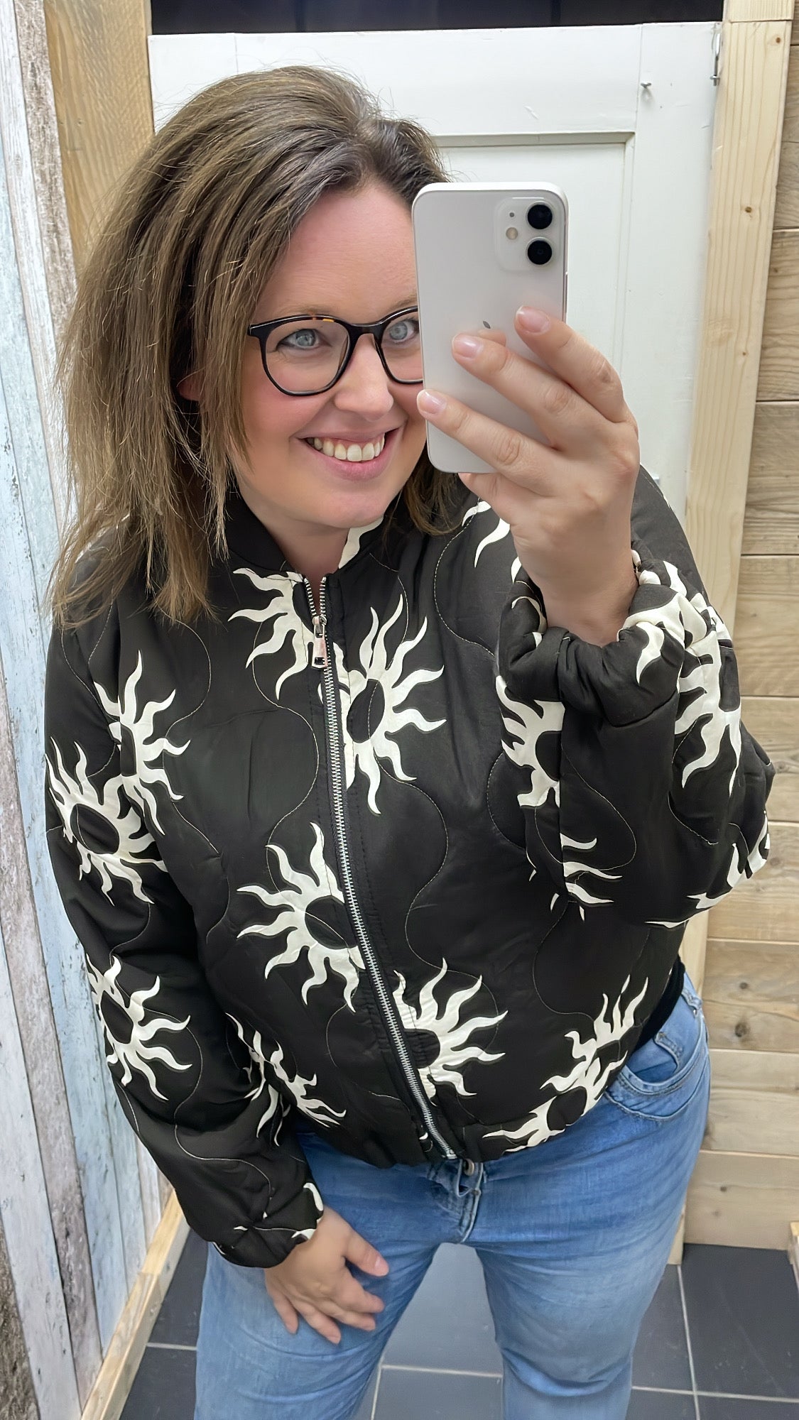 Deze print zagen we in de zomer al veel, maar komt in het najaar ook weer helemaal terug! Je sluit de bomberjas d.m.v. een rits.