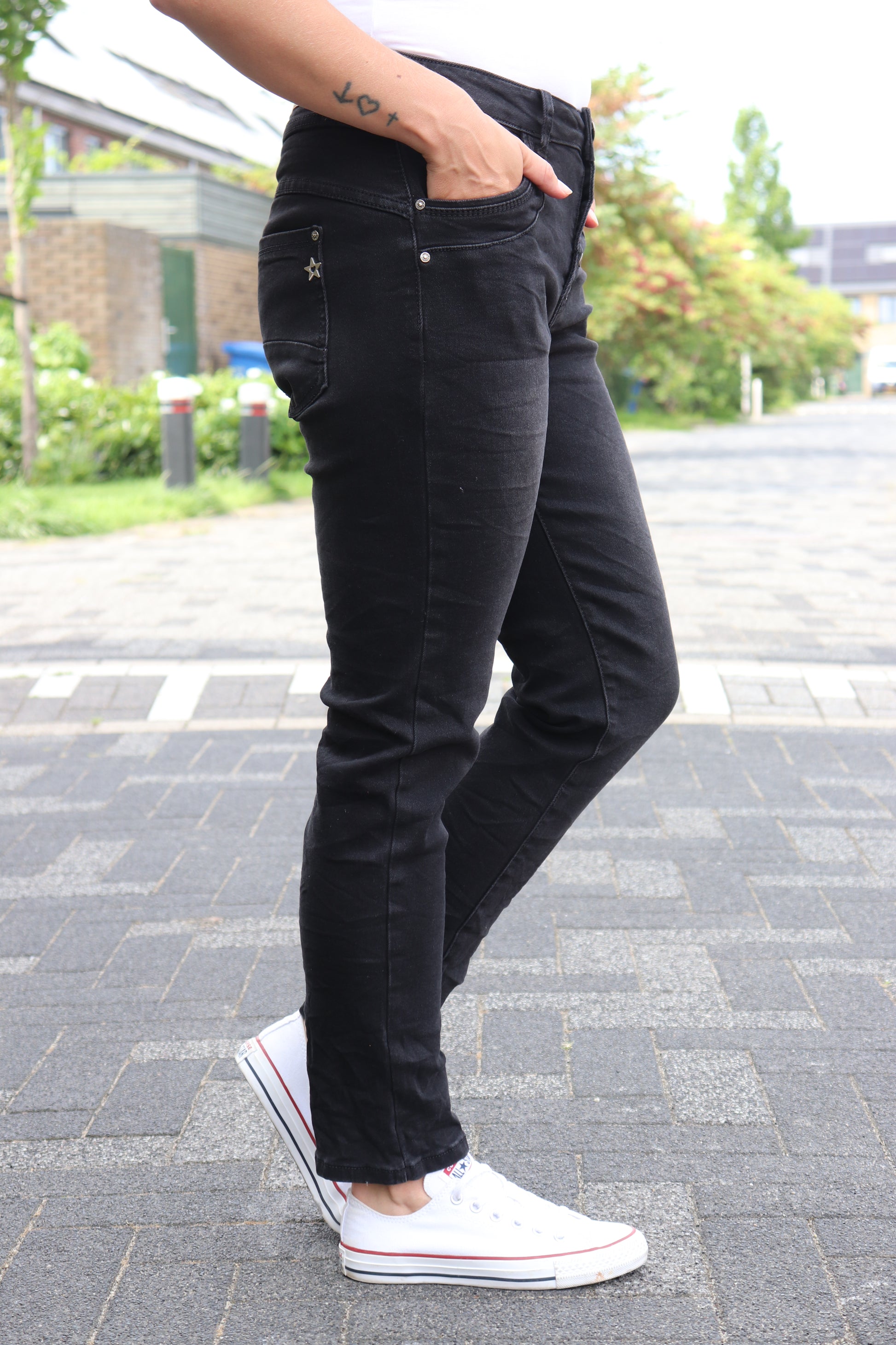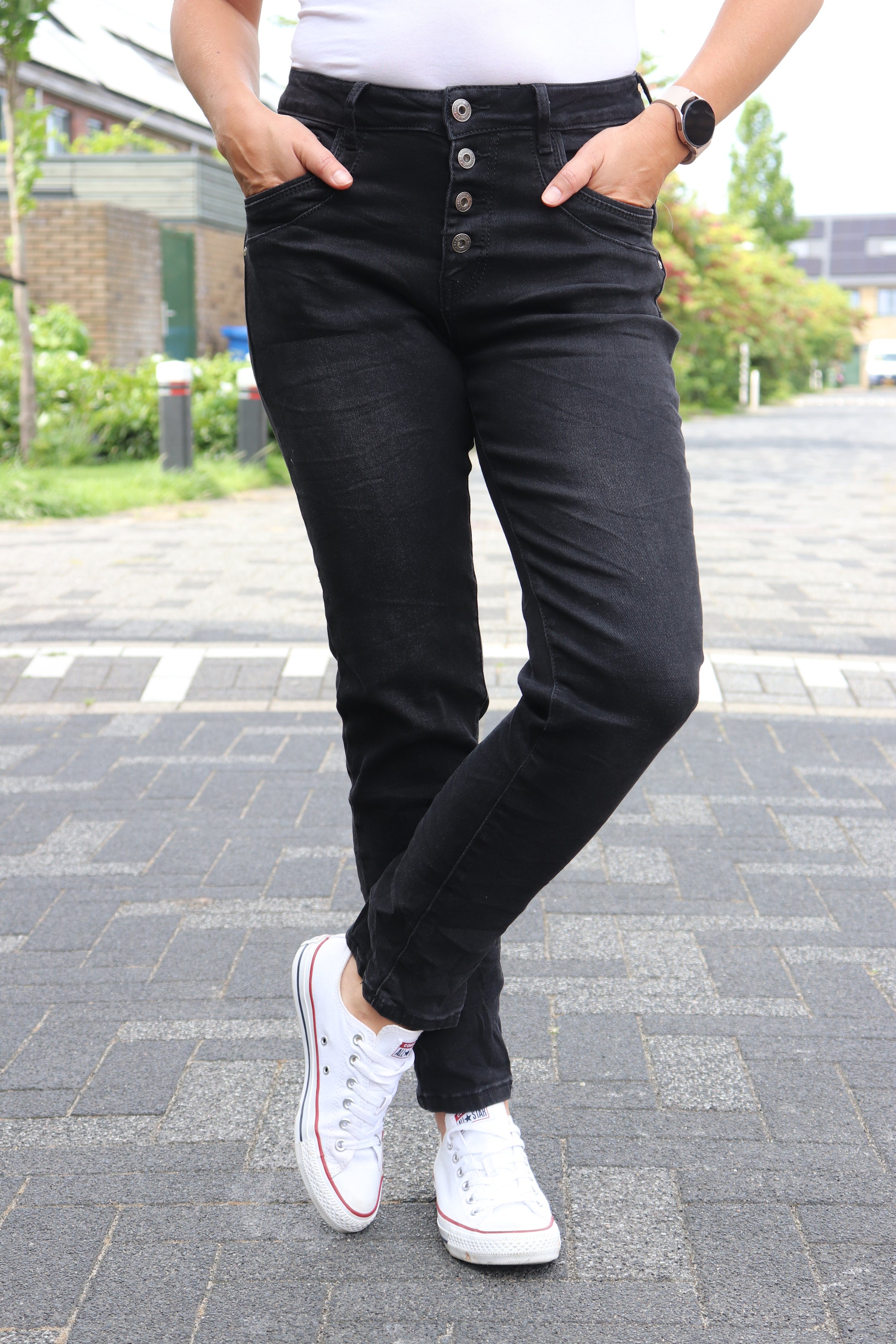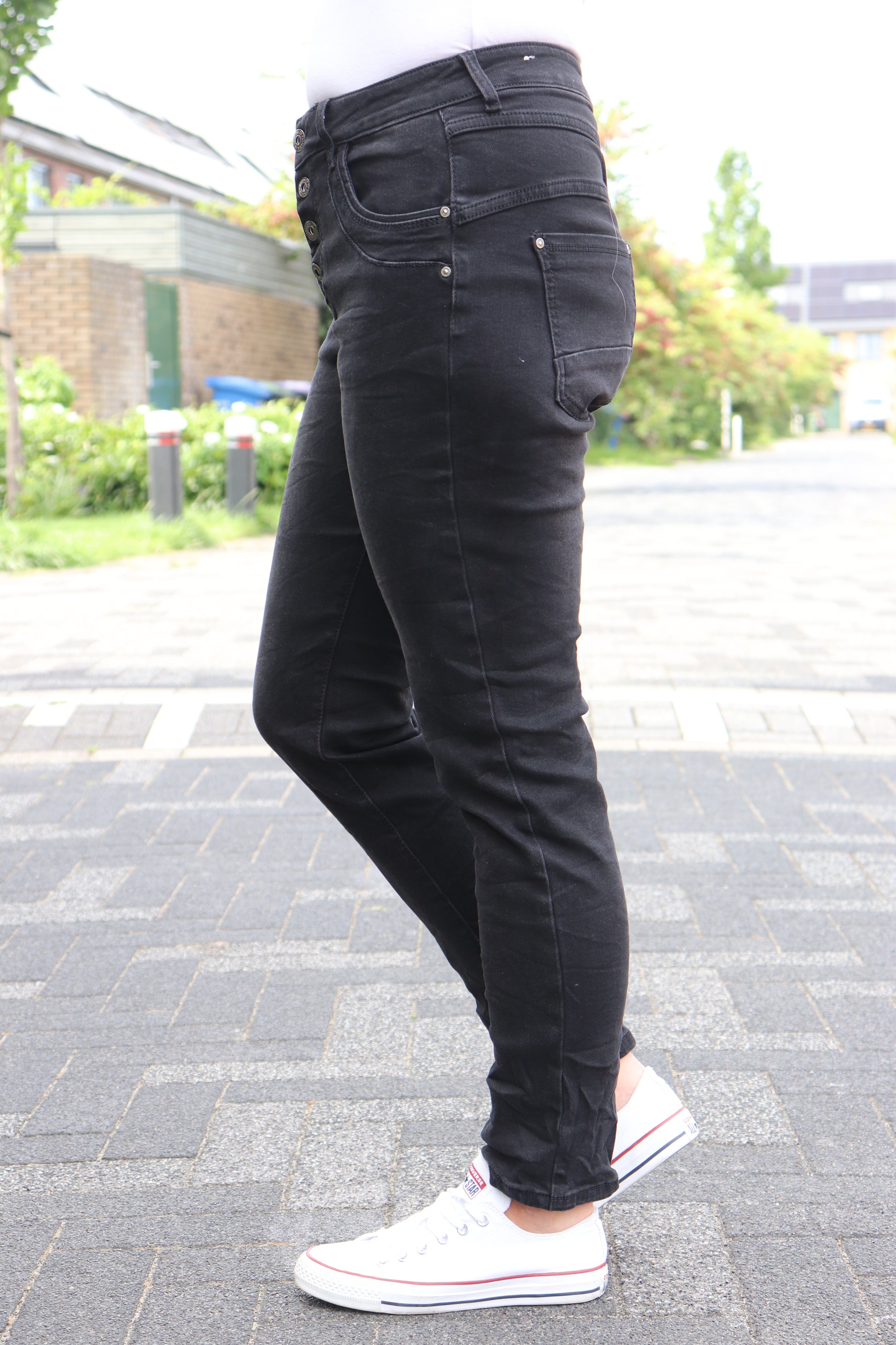 Jullie favoriete broek is terug. De broek zit echt heerlijk en sluit d.m.v. knopen.