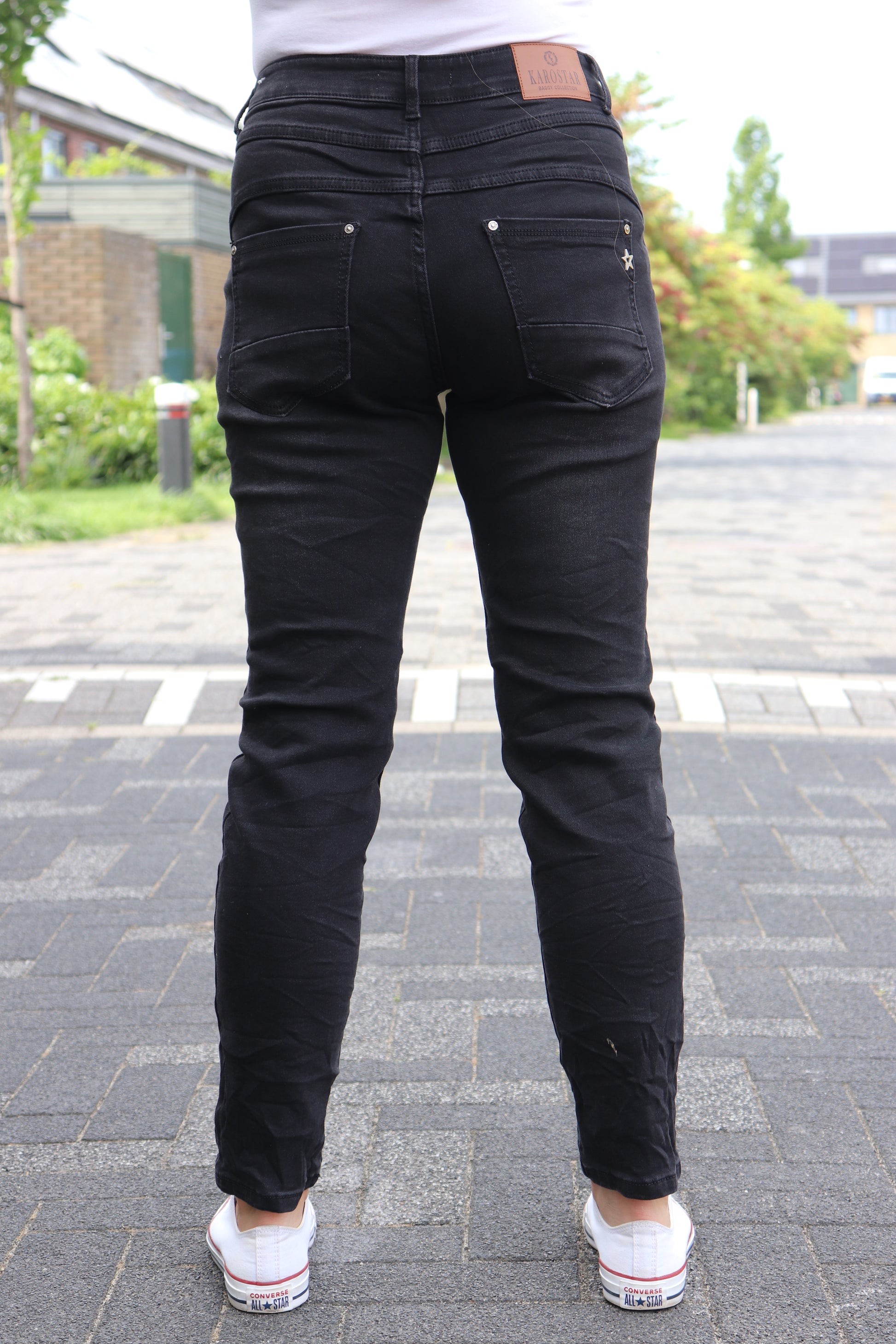 LET OP: de broek wordt 'gekreukeld' geleverd, maar bij aantrekken zijn de kreukels weg.