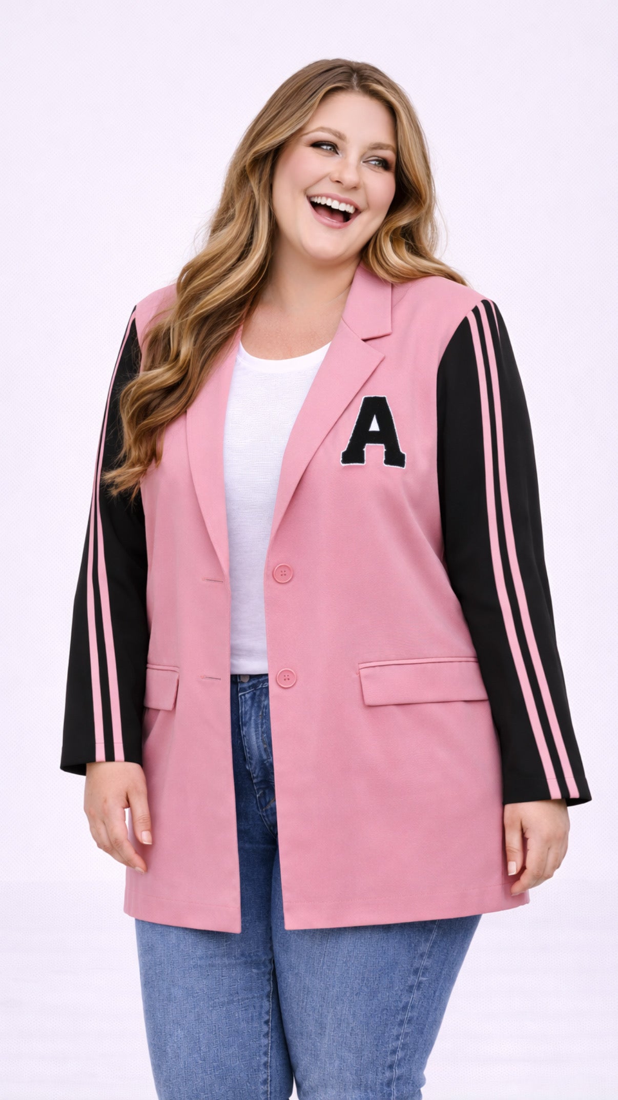 Op de voorkant staat een embleem met de letter 'A' welke is gemaakt van teddystof.