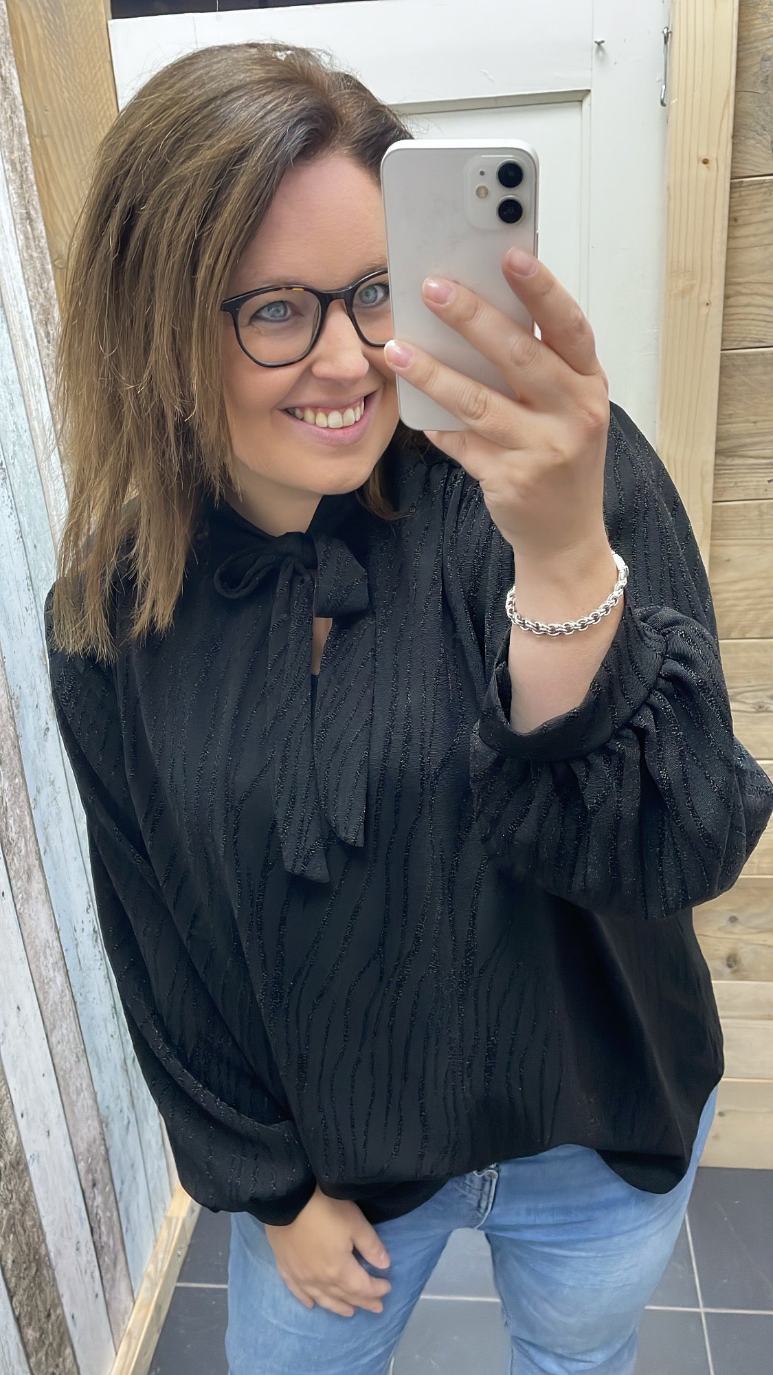 PS BLOUSE GLITTER 'STRIK' | ZWART