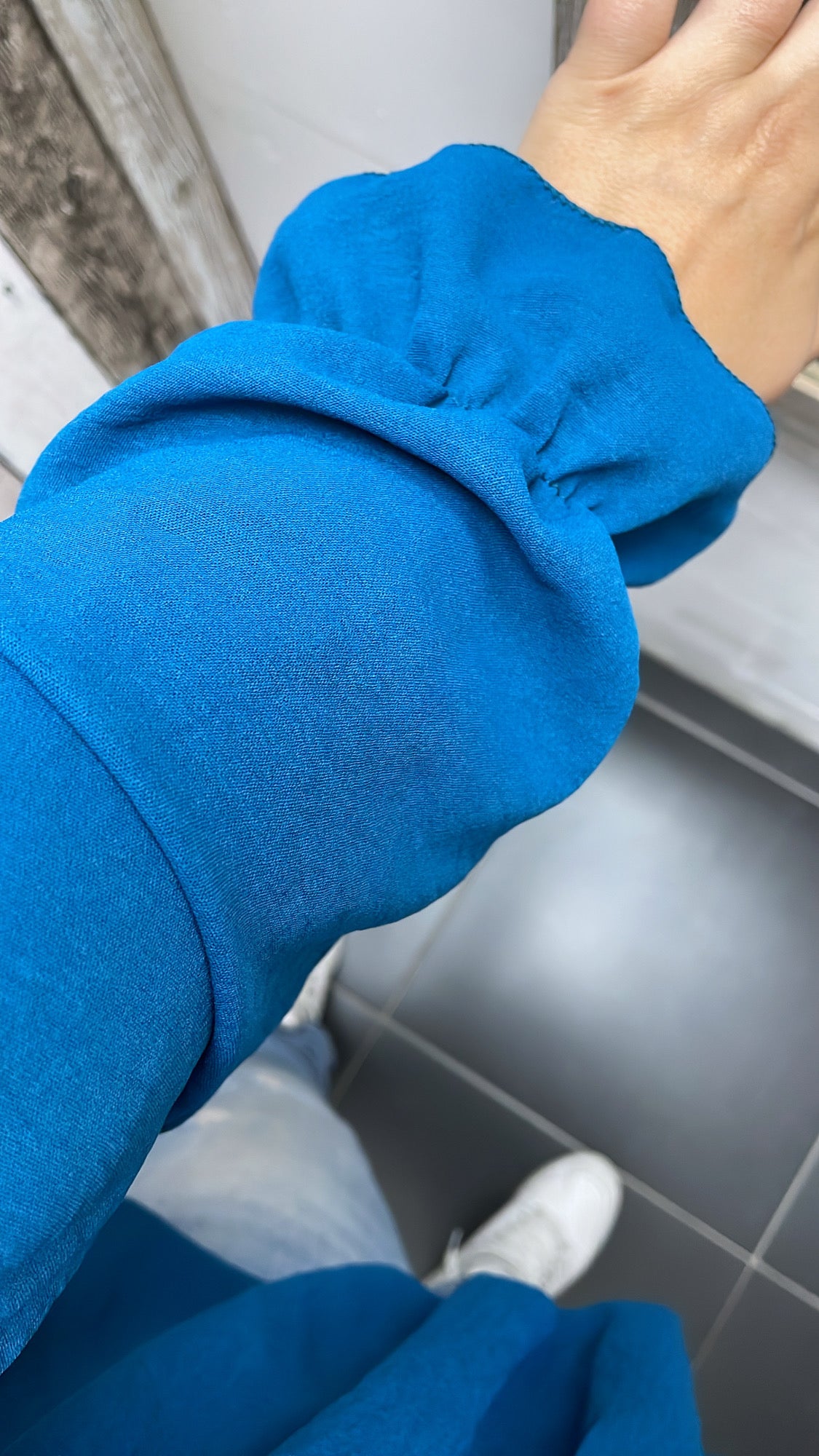 Onderaan de mouw zit een mooie pof en de mouw is van elastiek.
