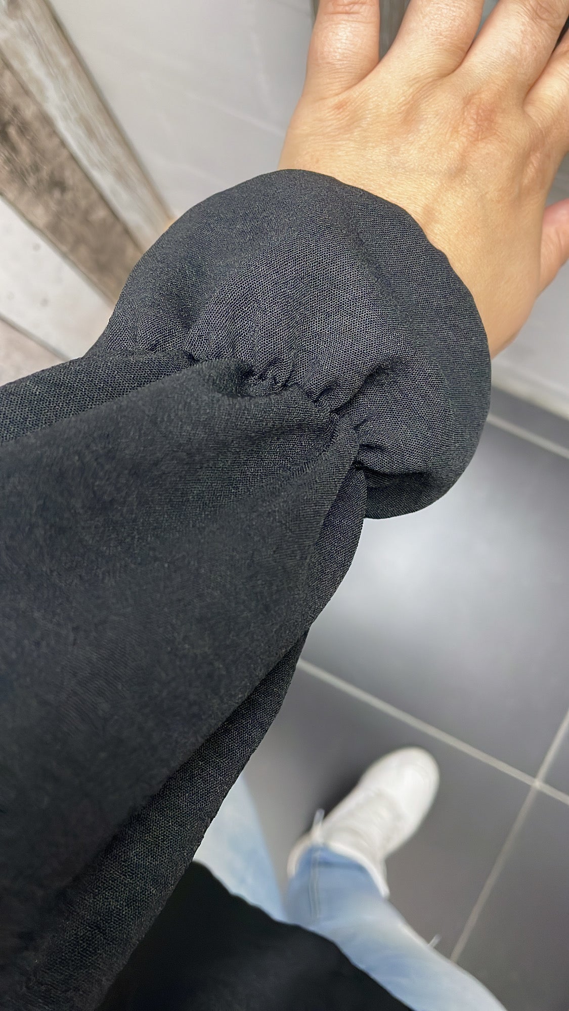Onderaan de mouw zit een mooie pof en de mouw is van elastiek.
