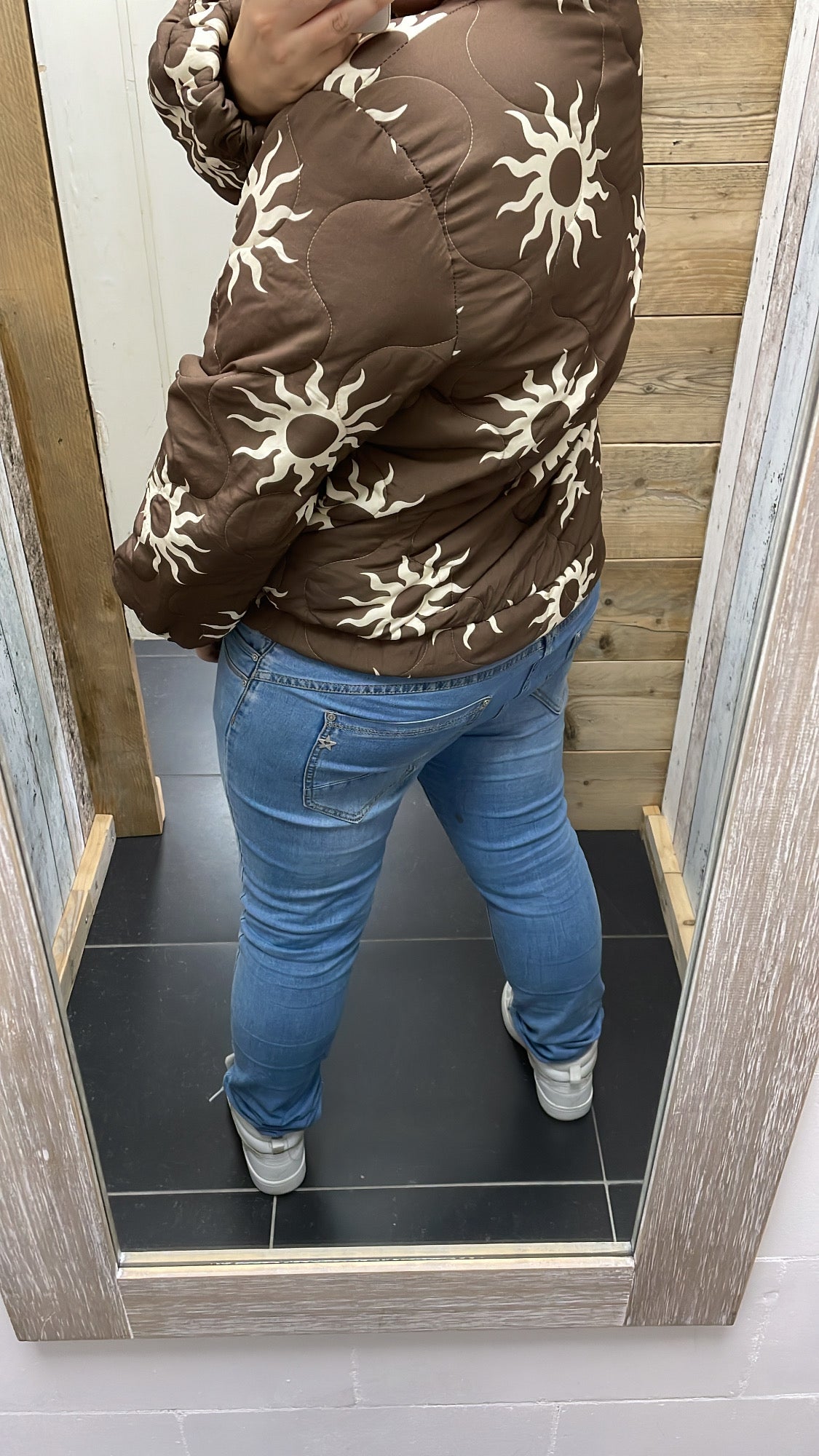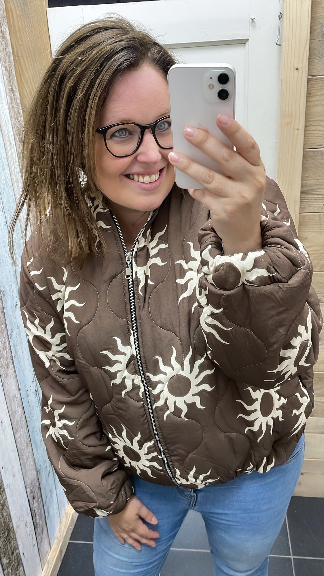 De bomberjas heeft lange mouwen en heeft een zonnetjesprint.
