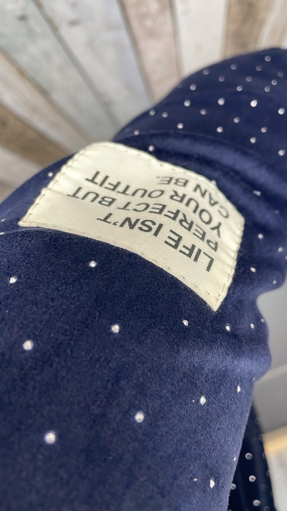 Op de mouw zit een embleem met de tekst 'Life isn't perfect but your outfit can be'
