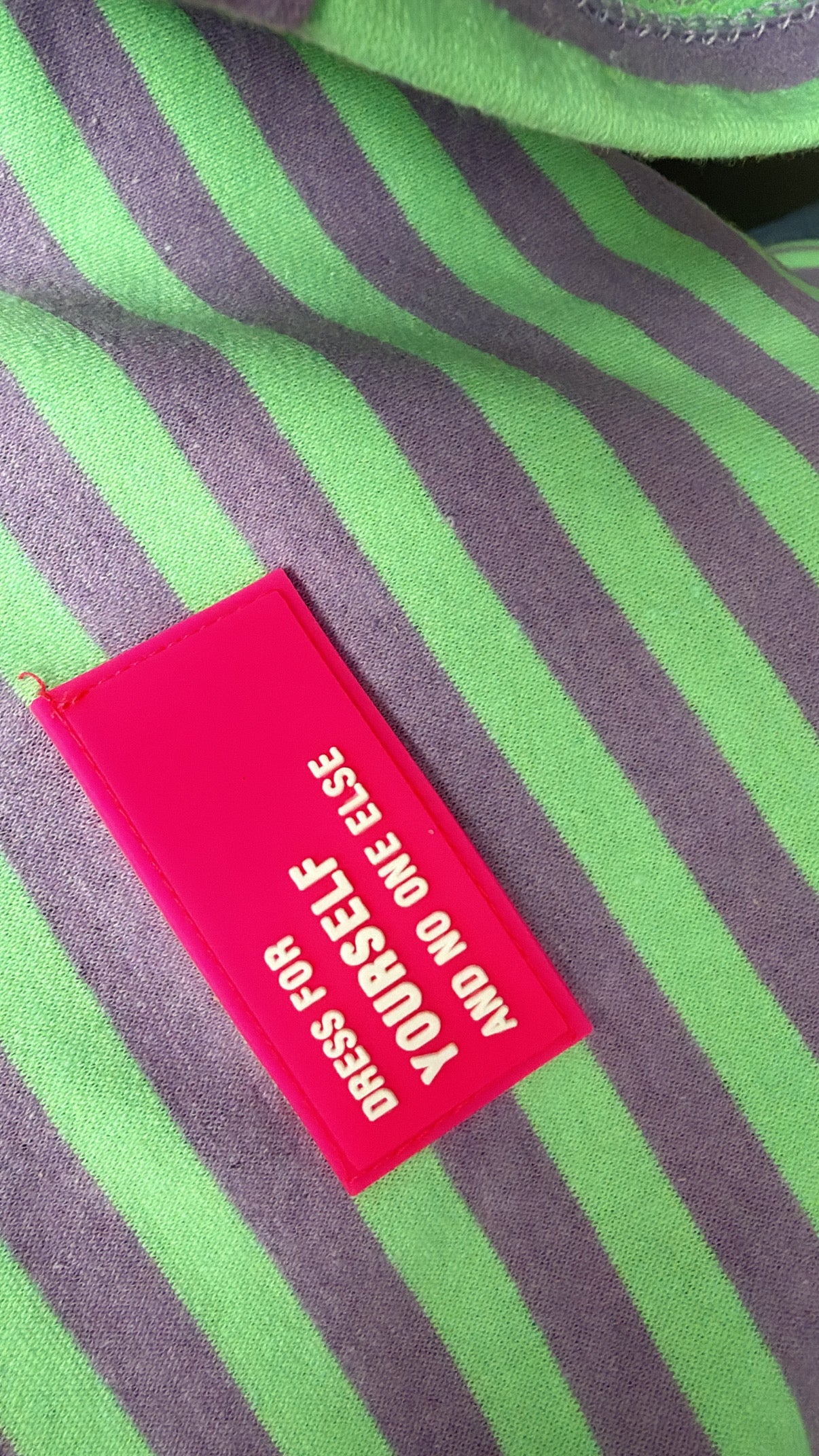 Op de voorkant zit een embleem met de tekst 'dress for yourself and no one else'