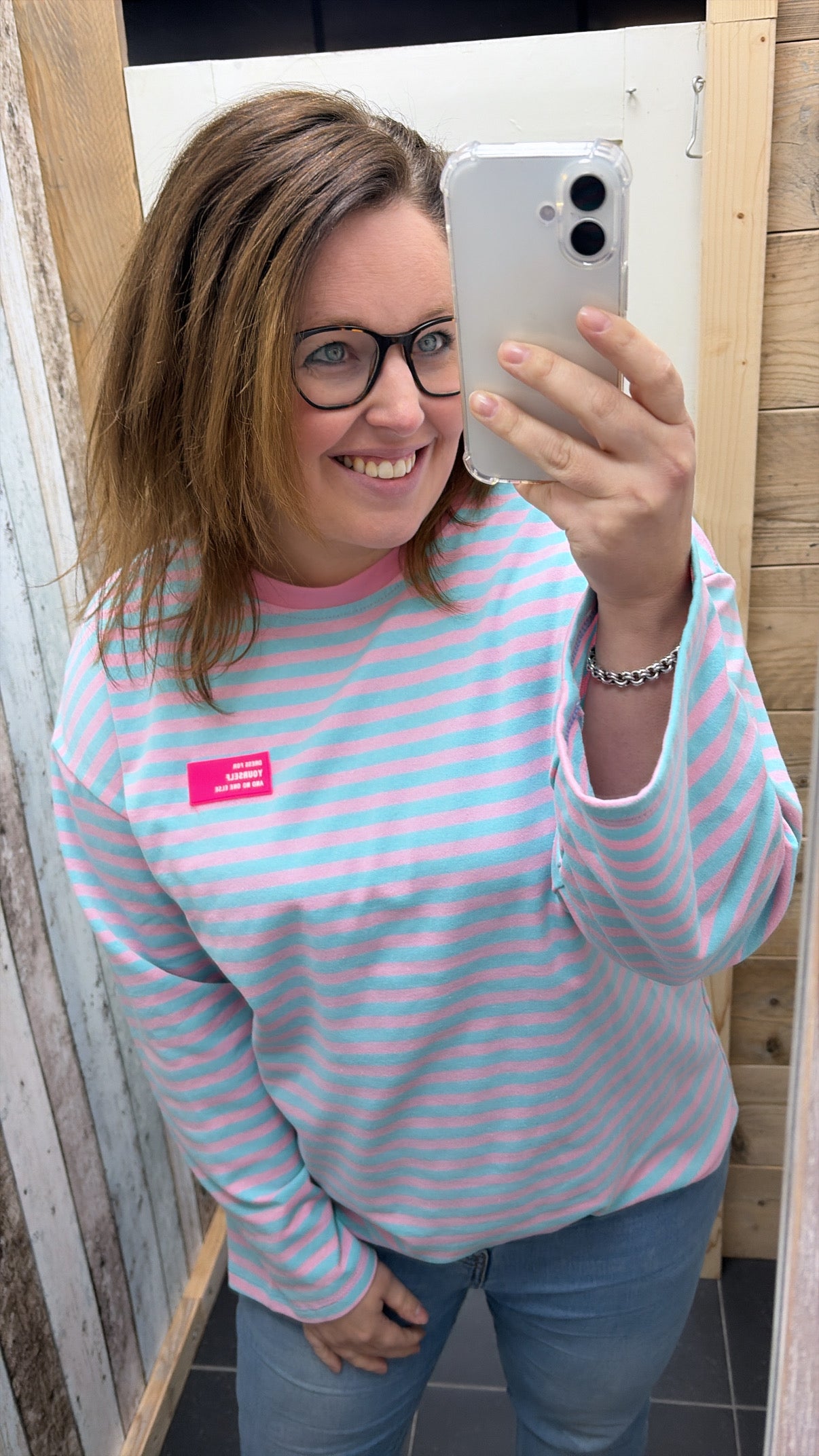 PS TOP ‘STREPEN EMBLEEM' | TURQUOISE/ROZE
