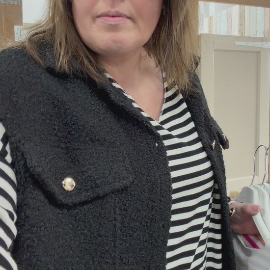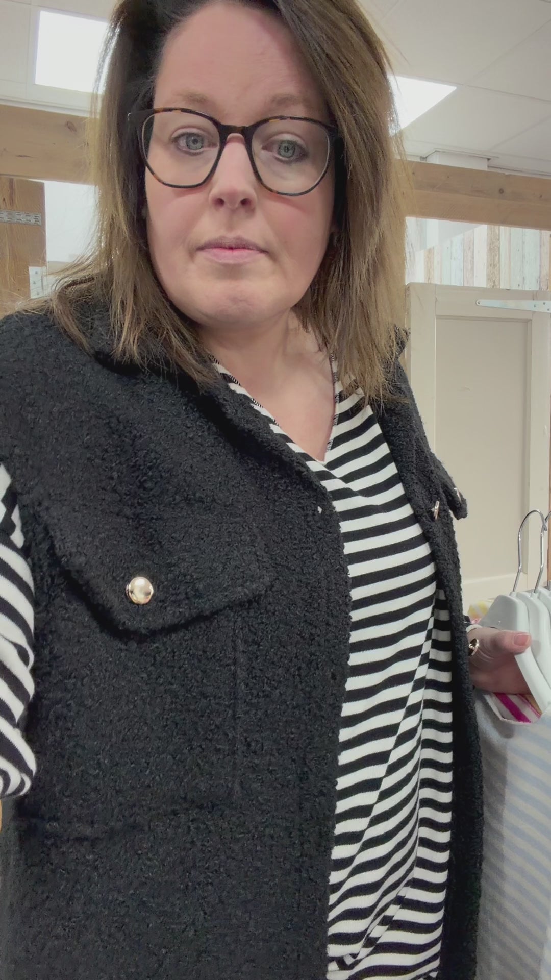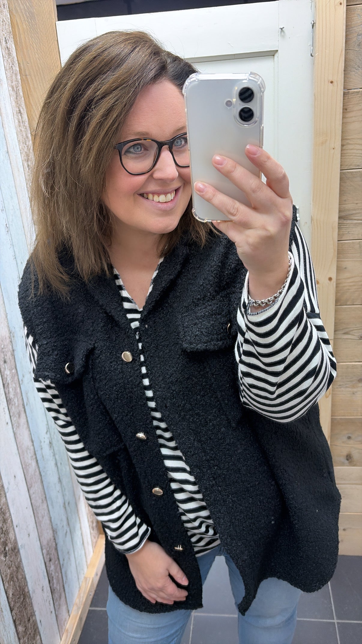De top heeft een V-hals en is heerlijk luchtig. Leuk om te combineren met een bijpassende teddy gilet of vest. Verkrijgbaar in meerdere kleuren.