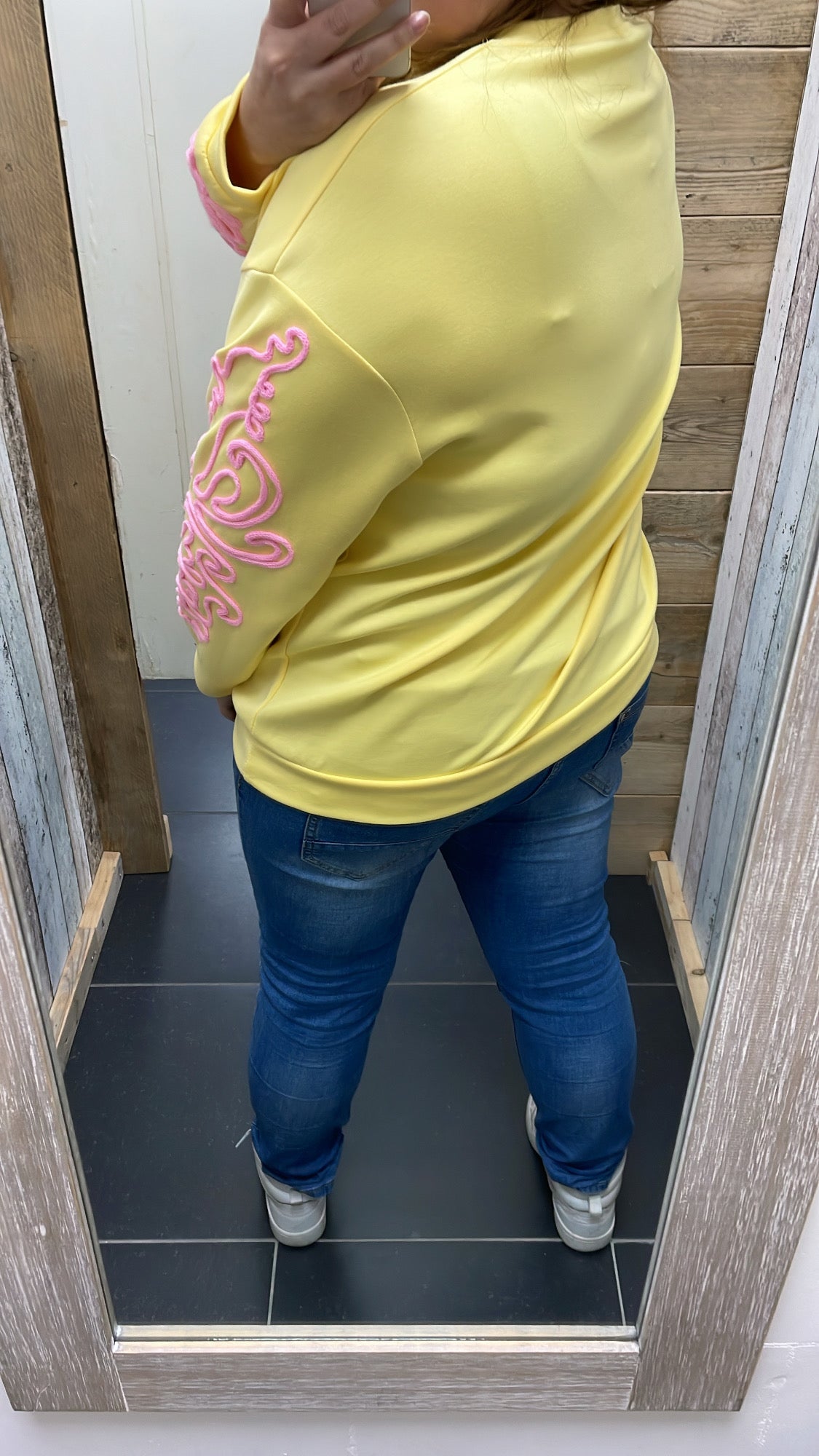 Op de mouwen zit een borduursel. Verkrijgbaar in diverse kleuren.