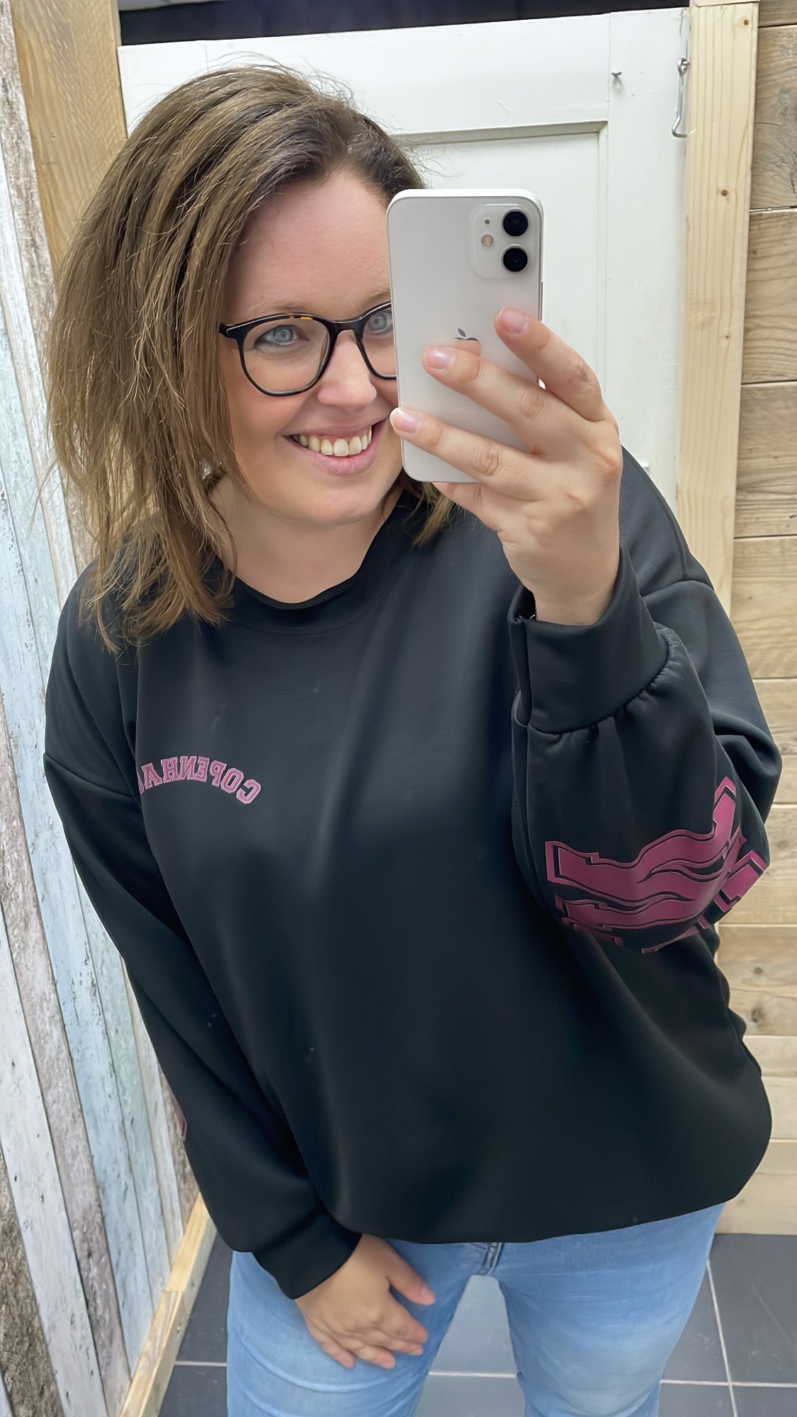 We gaan het koudere weer tegemoet en daarom hebben we al hele lekkere warme truien binnen. Op de voorkant staat de tekst 'COPENHAHEN' in het klein en op de achterkant in grote blokletters