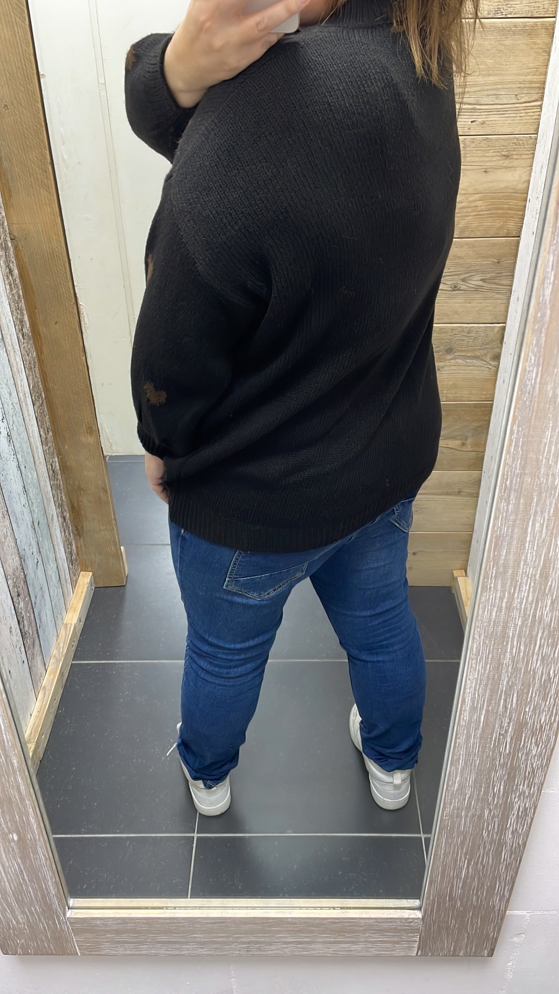 De trui heeft een mooie borduursel en heeft lange mouwen en een ronde hals.