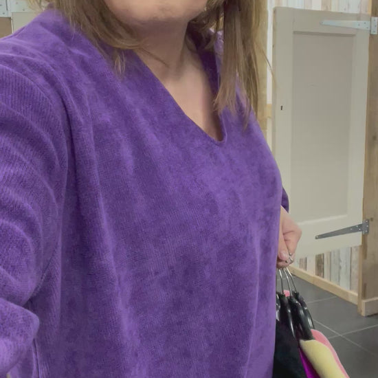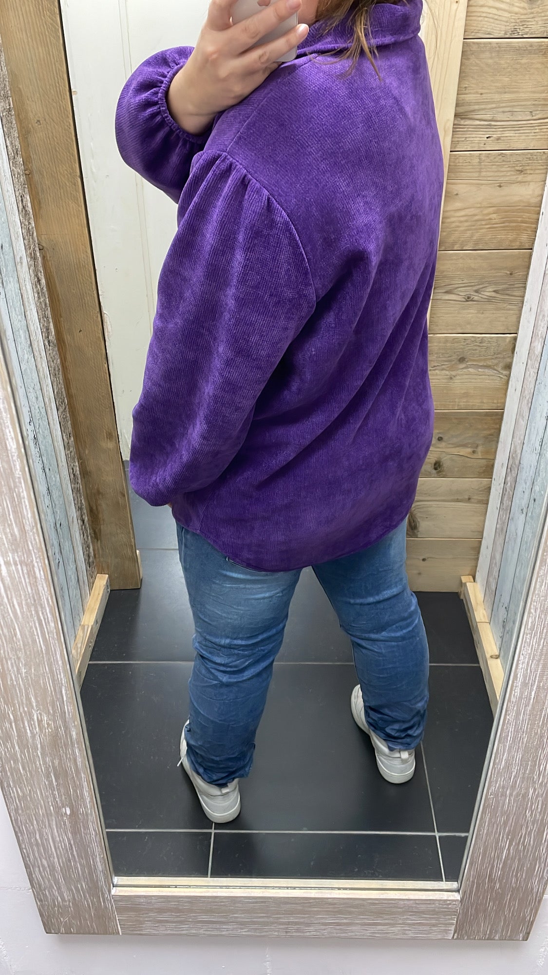 De trui valt wat langer waardoor je lekker je buik en billen kan verbergen.