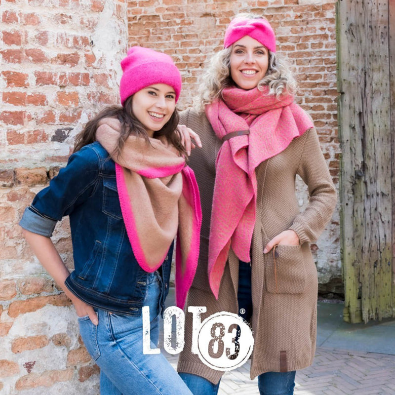 Met het label (LOT83) kan je de sjaal vastmaken zodat deze goed blijft zitten en niet afzakt.