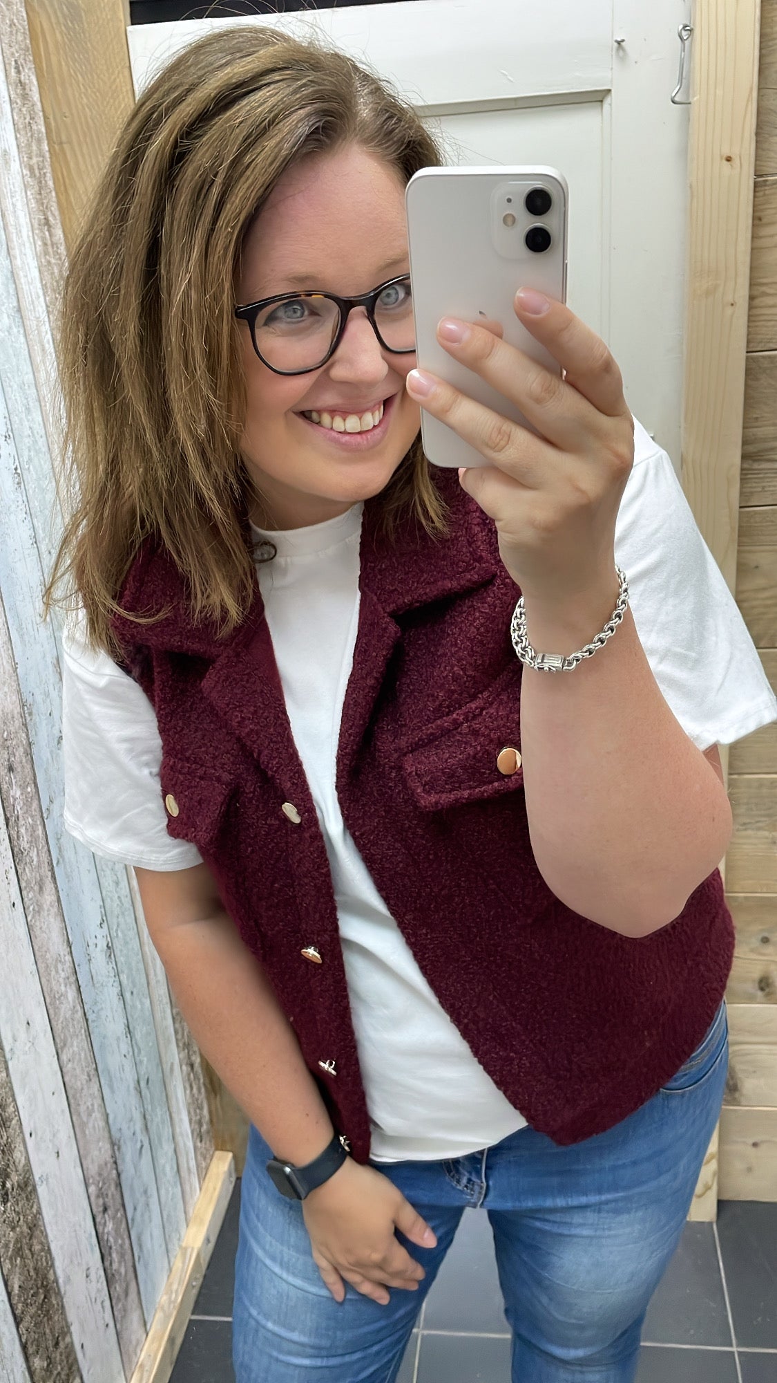 De gilet is superleuk om te combineren met de nieuwe tops