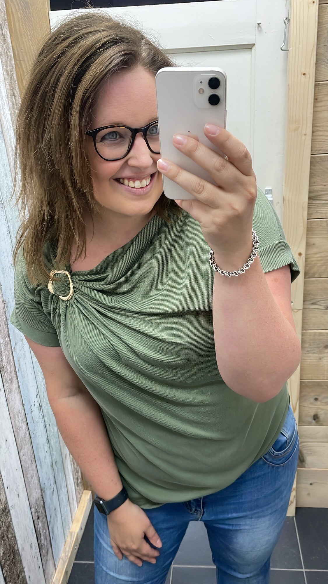 Deze prachtige top is erg chic door de mooie gesp linksboven.