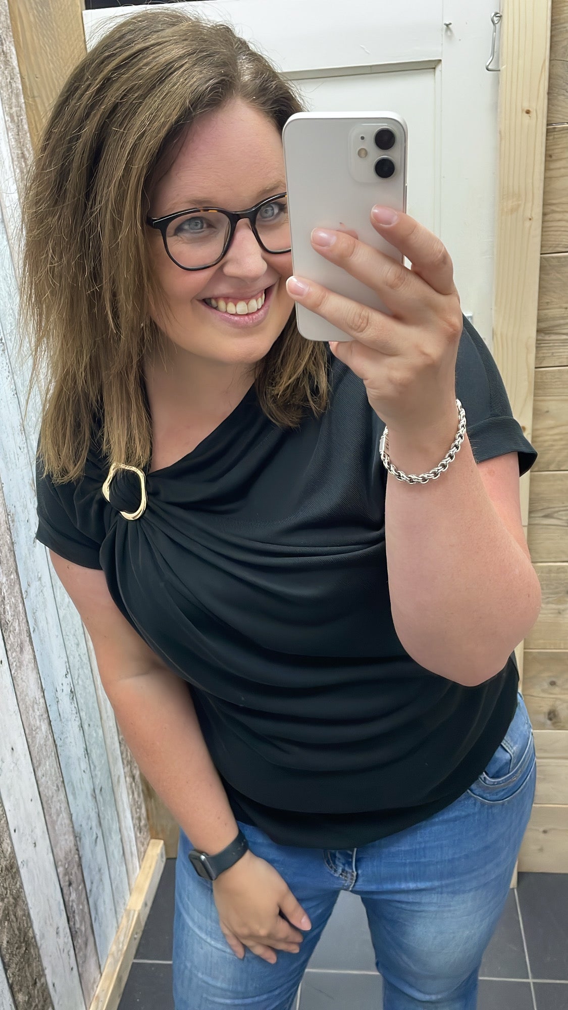 Deze prachtige top is erg chic door de mooie gesp linksboven.
