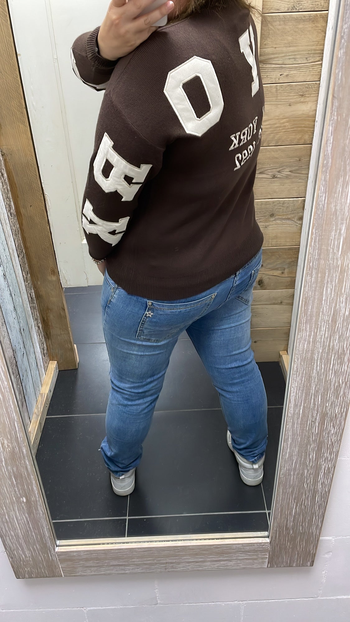 Op de achterkant staat de tekst 'NEW YORK' deze loopt door over de mouwen.