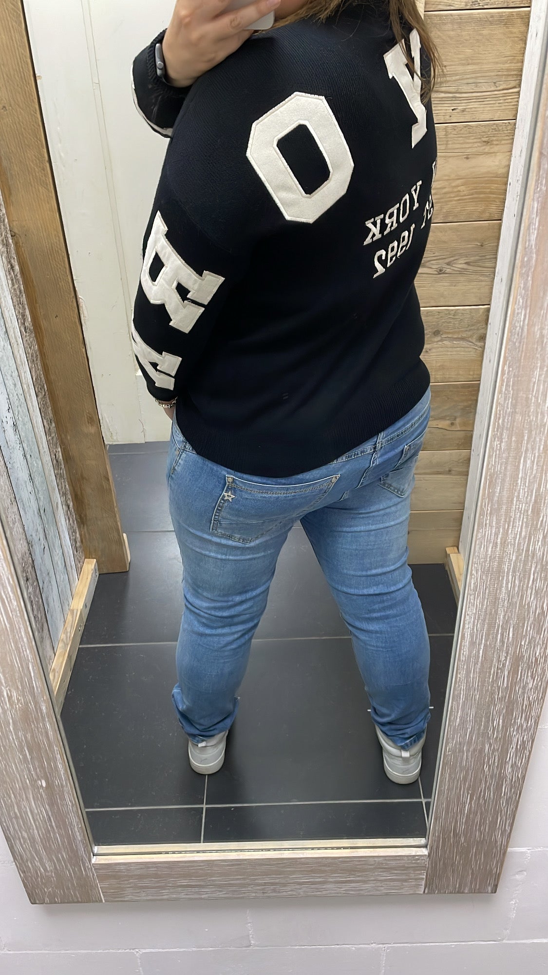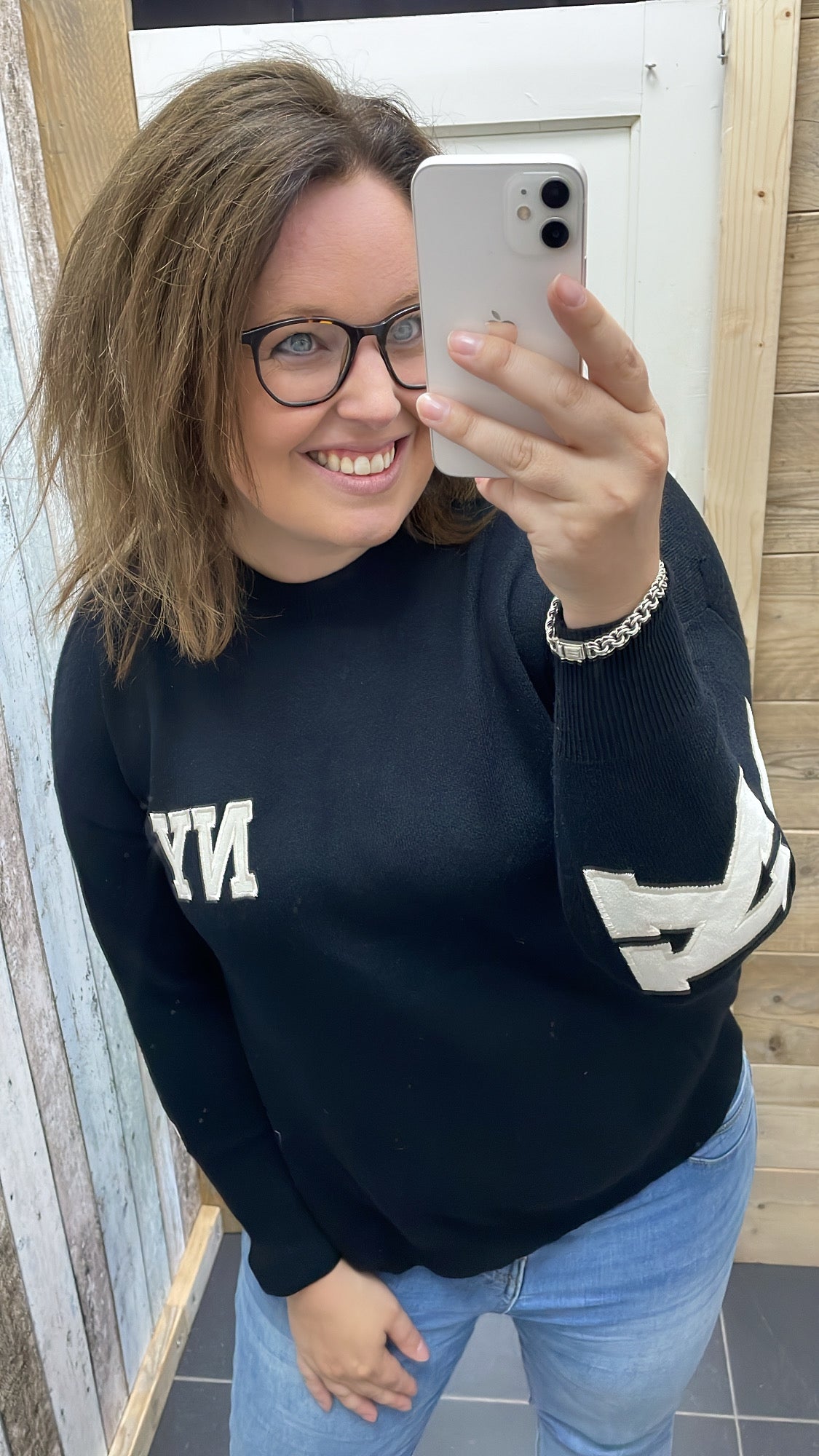 Op de achterkant staat de tekst 'NEW YORK' deze loopt door over de mouwen.